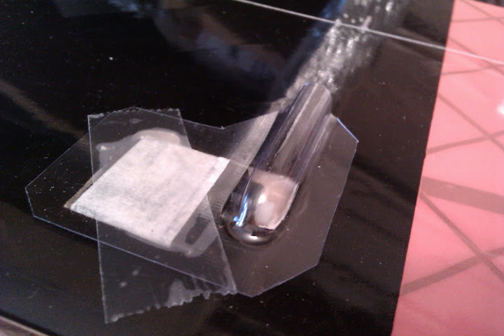 Мне больше понравилось не скотчем, а циакрином прокапывать. По контуру, через каждый сантиметр по мелкой мелкой капельке. Если надо отдрать - ножик просовываешь и щёлк-щёлк-щелк.