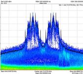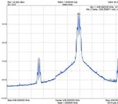Имеющйся у меня анализатор страдает тем, что в реальном времени он не способен вырезать копию прыгающего сигнала на 21МГц левее реального (он хорошо работает со статичными данными, вырезая постобработкой ложные переотражения), поэтому обзорная картинка не очень правдоподобна, часть пиков мнимые и реальный диапазон около 70МГц, не 90МГц как на картинке.