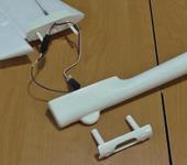 Сборка крыла, изначально соединяем разъемы сервомашинки с удлинителем, пропихаем насквозь алюминиевую трубку и соединяем консоль с фюзеляжем модели.