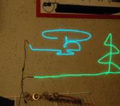 Свечение хорошо видно в темноте, если запитывать от 7.4 V при этом возрастает токопотребление незначительно в пределах 300 Ма.