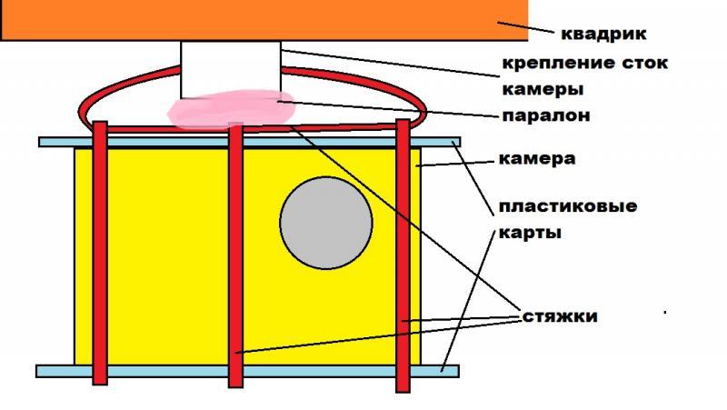 Также можно подключить экшн-камеру желательно весом до 100 гр. Например, Mobius ~ 40 гр., Xiaomi Yi, GoPro(без крепления). Для подключения используется спец кабель для этих камер. Но! Подключать надо только видеосигнал, а не питание. Красный провод не подключаем. Иначе получим “поджаренный” девайс за несколько тысяч. -