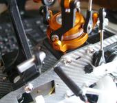 При определённом угле поворота тяги наконечник упирается в “ушки” на тарелке и можно в полёте красиво остатся без тяги. Но проблема решается поворотом наконечников на тарелке и микшере строго под 90гр - тогда тяга не поворачивается настолько сильно и зазор остаётся. Второй неприятный момент - жуткие люфты:
