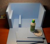 Нарезал заготовок ножом, некоторые распустил пенорезкой до 20мм (10мм остатки пойдут на перегородки). Склеил детали, обтянул скотчем с утюжком, вырезал необходимые углубления и окошки.