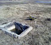 надо отдать должное Олегу Иванычу, с чьим передатчиком мы пересеклись - услышав мой вопль про отказ он вырубил свой передатчик, и я успел выдернуть самолет возле самой земли во второй раз. Подойдя к самолету, я в третий раз удивился его желанию жить - до бетонного коллектора с водой не хватило совсем чуть-чуть:
