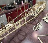 Нарезал детали из фанеры по чертежам на лазере. Использовал уже исправленный чертеж крыла и деталей шпангоутов. Разложил все детали и естественно, руки чешутся, собрал все на сухую, чтобы прикинуть реальный размер самолета. Хочу сказать что все размеры подогнаны идеально, все встает на свои места и в пазы. Следующим этапом все разберу и начну клеить, сделаю больше подробных фото, вдруг кому то будут полезны)