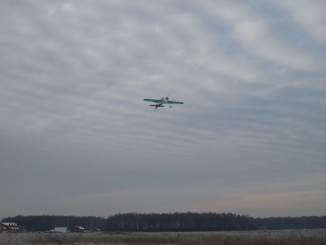 Выпал снег и наступило похолодание, первая зима для этого самолета. Больше боялся за электронику и акки, как они будут работать на морозе, но Сушка прекрасно себя чувствовала при температуре -6 °С, -8 °С. ПЖ-кие 06-е сервы нормально переносили мороз в течении 3-4-х часов полетов, без глюков и подклинивания редуктора.