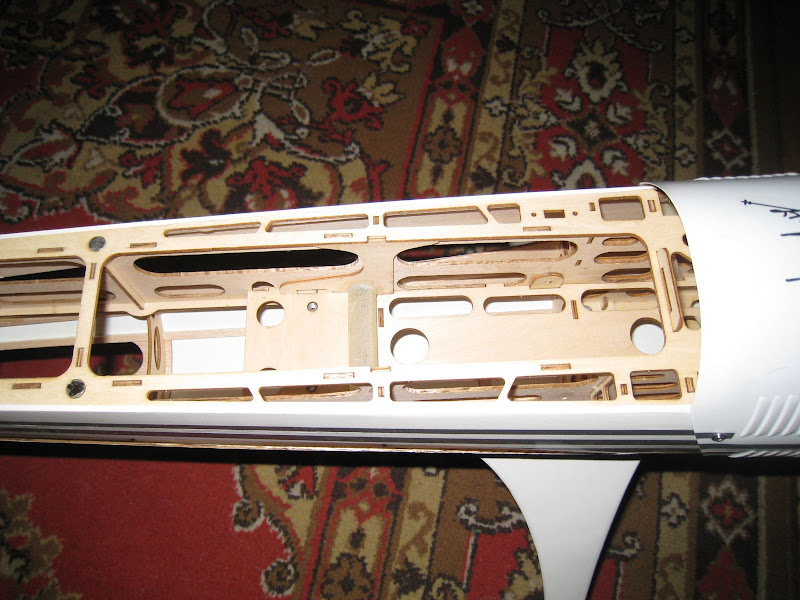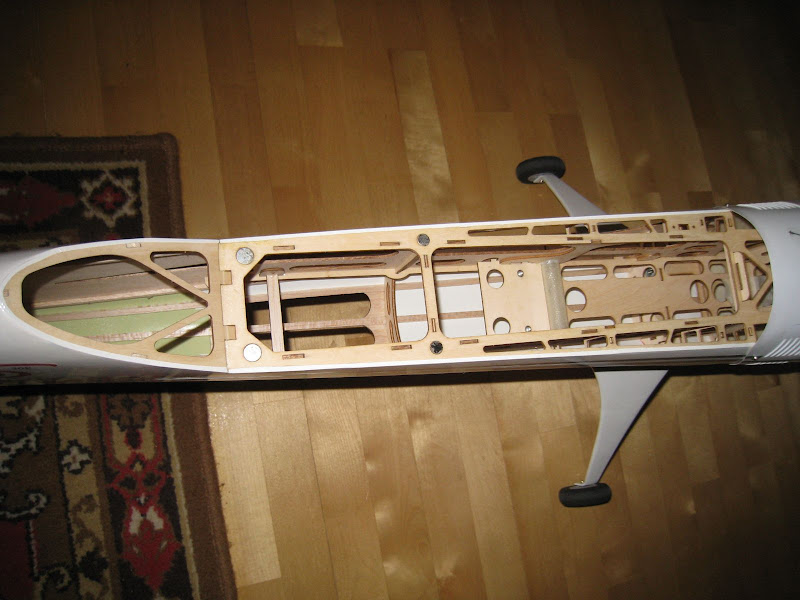 Сборка фюзеляжа: осмотрел внутренность фюза, все в норме, без трещин и дефектов, практически все швы элементов фюза праклеены. Дерева в этой модельке оказалось побольше, чем в тойже Катане 30-ке от Себы, но на вид хрупковато т.к. всетаки электричка, а не ДВС самолет. По фюзеляжу подтянул пленку везде, пару магнитов подклеил, пролил некоторые швы (буквально 50-60мм общей длиною).