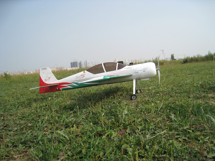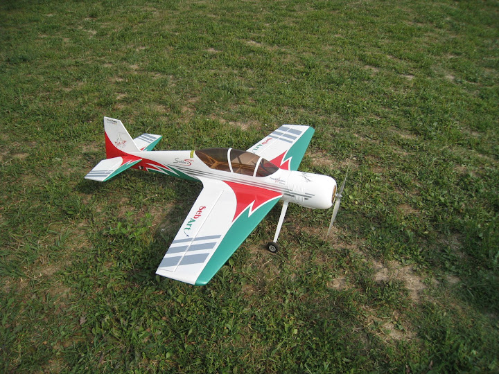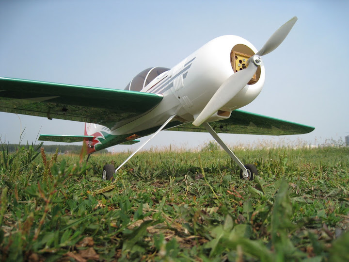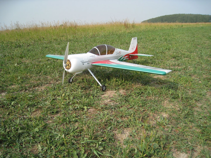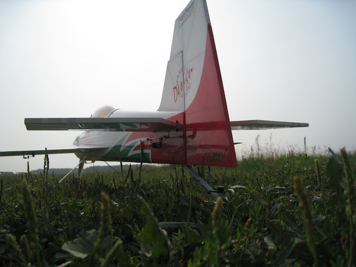 Настройки, углы отклонения рулей и экспоненты, для облета ставил как в мануале. Центровку по трубе. В принципе тяги хватает на большинство фигур, мотор сильно не греется, теплый на ощупь после полета. Самолет прет, но не так динамично как хотелось бы, заметно чувствуется нехватка тяги, например, для выполнения полёта «на ноже» приходиться немного разгонять самолет. Вертикали не понравились мне, хочется более динамично “подниматься” т.е. с большей скороподъемностью. Разбег при взлете относительно длинный, метров 5-6-ть пробегает, это без ветра. Если взлетать против ветра, метра 3-ри разбег. Вывод: мотор 3019 явно слабоват для этого самолета, точнее, если взлетный вес получается 1400-1600гр. Мотор нужно однозначно менять.
