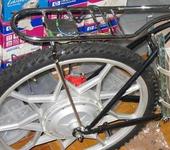 Отогнул вилки, поменял колеса, снял все лишнее (педали, подшипники), поменял руль, поставил ручки газа/тормоза. Остается теперь компоновка батарей, электроники и с тормозами нужно что-то думать, как суппорта закрепить. Расчетная дата испытаний 9 июня 😃