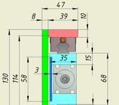 Т.к. фланец ходовой гайки развернут вертикально, опору желательно сделать шириной как гайка - 40 мм. Подшипники 12х28х8. Чтобы не городить еще и кронштейн для двигателя, опору и кронштейн сделал единой деталью.