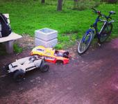 В моём арсенале есть велосипед, и в своё время я пытался приспособить его для перевозки самолёта и чемодана с пультом. Право слово такой хрени - не видел свет.