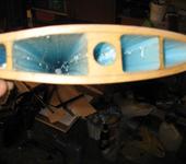 Итак, берем пенопласт толщиной 2 см и вырезаем контур крыла верх и низ, далее из этогоже пенопласта вырезаем внутренние вставки определенной ширины, и склеиваем на смолу. Во вставке, в которой проходит пенал вырезаем канавку для того, чтобы пропустить в нем струну.