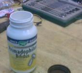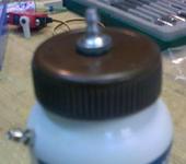 Во время первых полетов выяснилось, что бак в 300 мл очень большой и расходуется за 10 мин полета меньше чем наполовину. За маленьким было ехать влом, посидел и сделал из баночки для каких-то таблеток. С морды удалось убрать около 150 гр., время полета 10 мин до сухого бака, таймер ставлю на 7 - за глаза.
