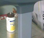 Я использовал полиэтиленовые 100-граммовые пузырьки от канцелярского силикатного клея для мелких моторов.