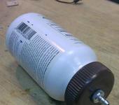 Во время первых полетов выяснилось, что бак в 300 мл очень большой и расходуется за 10 мин полета меньше чем наполовину. За маленьким было ехать влом, посидел и сделал из баночки для каких-то таблеток. С морды удалось убрать около 150 гр., время полета 10 мин до сухого бака, таймер ставлю на 7 - за глаза.