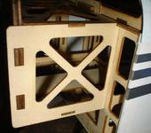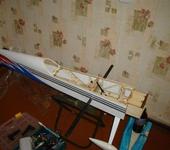 Вот столько сделал уже, установлена конверсия под ДВС, фото прилагаються, мотораму покрыл первым слоем уретанового лака для паркетов, вклеил руль направления и поставил колеса. НА фото выложил внутренности специально, мне кажеться надо усилить места в фюзе куда штыри от крыльев вставляються и немного морду после моторамы, что скажите ?