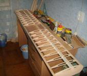 Из двух половинок вчерне собрал крыло. В наборе передняя и задняя кромка крыла были уже нужного профиля, поэтому строгать и мусорить практически не пришлось.