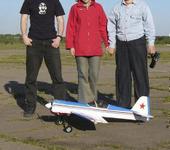 Конечно полетит. И даже чересчур резво. Вот на фото ( 13 июня в Монино ) примерно такая же по весу и размаху модель CУ-26, сделанная мной из набора Graupner с таким же мотором OS MAX .50 SX, правда, винт на ней был 12,25 на 3,75. Размах 145 см, взлетный вес около 2500. Взлетает как ракета. Но из-за проблем с высокой посадочной скоростью я положил эту модель на полочку и делаю сейчас вместо нее пару других моделей.