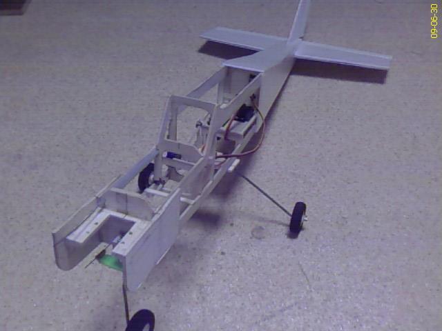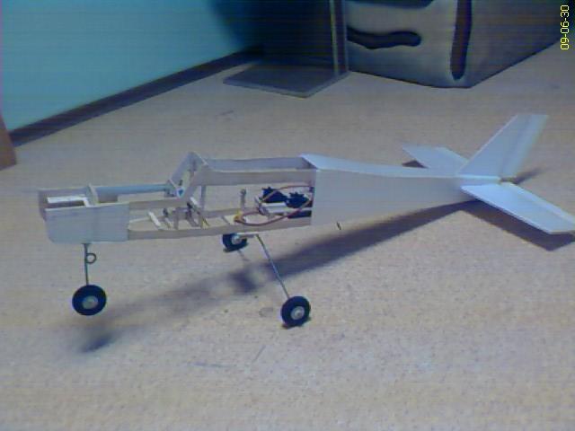 Как-то хвост хлипковат (часть от кабины до стабилизатора), если это уже под обтяжку, то я бы такой даже на электричку не поставил не говоря уже о ДВС, надо его бальзой обклеить и еще неплохо тонким стеклом, тогда он лопаться не будет. У меня похожий тренер сделан, только под электрику, так если стеклом не проклеить, бальзу колоть начинает в случае неудачного приземления.