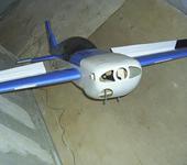 Стойка шасси из двух половинок. Половинки входят в боковые прорези фюзеляжа и фиксируются винтами внутри на поперечной фанерной полке. Здесь же располагаются сервы газа и руля направления, аккумулятор, приемник и бак. Все это сразу за первым шпангоутом и защищено снизу кожухом. По одной серве на каждый элерон и по одной на каждую половинку руля высоты. Фюзеляж – бальза, фанера, крыло бальзовое наборное.