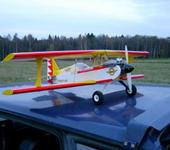 Имею такой самолетик. Первым его быть не советую. Если его собрать грамотно, получится пилотажка. Подчеркиваю это, поскольку вижу много неточностей в ссылках и оценках. Прежде всего он под ДВС 0.1-0.2 куб.дюйма