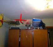 Биплан под потолком. Сегодня летал. Установил лыжи.