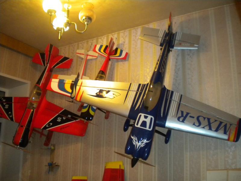 У меня в спальне на шкафу уместились Як-54 2,2м 55сс, Як-54 1,8м 30сс и Экстра-330 1,98м 35сс со снятыми стабами, плотненько валетом. Плоскости на втором шкафу у старшего в комнате. Рискнул в эту зиму оставить в гараже Гелиос90 20сс и Кальматика, посмотрим как переживут. Пенки по углам…
