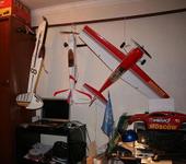 Еще два самолета - импеллерный F-18 и Экстра от Грейтплейнз - висят на балконе. Держатся молодцом. Фотографировать не ходил - там темно и холодно, а в темноте где-то прячется моя гламурная кошка. Страшный, безжалостный зверь, отожравший от Футабовского приемника антенный провод… Змея… 😃