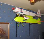 В осенне зимней период самолёт проживает в комнате на шкафу, а весенне летний переезжает в гараж. Из гаража самолёту намного удобней добраться до лётного поля.