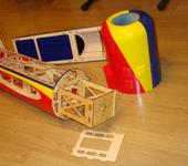 Был пока я его не купил. Ставлю на него ROTO 35VI. Вес голого планера 3850, взлётный вес 6500. Если заменить трубу и стойки шасси на уголь можно скинуть ещё 300 грамм. Морда у него очень длинная (не пропорционально), в связи с этим центровка сильно передняя пришлось обрезать мотокороб на 80 мм.