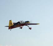 облетали як , посадка не очень гладко прошла , но цел - в полете стабилен ,может летать медленно (против ветра -зависает как орел, скорость ветра не мерили) ,бочки стабильные , петли более менее - обратная не нравитса (не ровно выходит из неё). газ не более половины, для полета хватает , винт 18х8. на руле высоты 2 сервы , морда не резалась ,питание 2 двух баночные липо с беками 3 А (на зажигание ) и 8 А борт ,руль направления на тросах ,шасси не переносились - штатные ,только алюминевая пластина в накладку установленна в месте крепления стоек, фюз усиливалса рейками бальзы и промазывася эпоксидкой+растворитель (что бы пожиже был ),в одной половинке РВ перерезались отверстия для петель , бак 500мл сдвинут вплотную к пеналу.