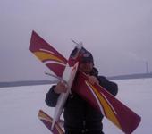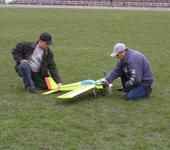 Первый полёт. Заправил, завёл проверил направление рулей, дал газу и модель понесло, руль высоты чуть на себя и модель оторвалась от земли и начала набирать высоту.
