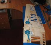 А заняться было чем - в крайнюю поездку, на взлете при очень сильном боковом ветре модель опрокинуло. Поцокало законцовки крыла и вылетела пробка у бака.