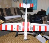 Востановил самолет. Сегодня ездил на полетушки. Погода немного подкачала - холодно и сильный ветер. Но все равно сделал 4 поноценных вылета. Как для начинающего - посадки были весьма неплохи. Самолет остался жив, хоть и садился на асфальтовую полосу. Немного напрягает плохой холостой и давольно высокая посадочная скорость. Пару раз выскакивал за пределы полосы в траву. Об нее и тормозил. Ну чувство длинны выбега после касания прийдет с опытом. В общем доволен как слон! Оттримировал по новой модель. Полетал с флаперонами, с флапами же и садился крайний раз - заметно снижает скорость. Рулится вполне приемлемо. Понял, что неплохо бы увеличить площадь руля высоты. РН небольшой, но его вполне хватает. На полосу заходил по диагонали со скольжением от бокового ветра. Разбил пластиковые колеса об полосу - нужны или пена или резина. Начинаю потихоньку понимать что хочу от полетов, и как должен летать самолет. К сажелению, видео нет.