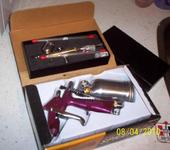Я свои с е-бэя брал. Все Китаиские клоны. Мини Спрэй-Ган (краснуй на фото) всётаки лучше будет. Хоте он и даёт больший расход краски но последняя ложится ровнее на капоте и обтекателях колёс. На аэрографе, в коим я использую сопло 0.5 (не знаю в каких это измерениях) для покраски переплётов фонарей пилота. Мой совет - маленький пистолет более подходящен для нашего хобби чем аэрограф.