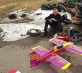 Полностью самодельная конструкция моей разработки. Мотор OS MAX 50. Взлетный вес с полным баком 2400. Размах крыльев 1300.