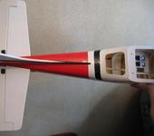 Вам надо лиш разметить пропил в верхней части фюзеляжа, подобно тому что вы делали для стабилизатора. Тяга на руль направления (РН) должна сверху идти. Рожок руля направления разместите и закрепите на руле после прокладки тяги а не до того. Так как у вас там бальзо/провлочнуе тяги, то подогнуть провлоку с обеих сторон от ядра тяги позволительно и точность в пропилах не так критична как если бы вы делали тросовое управление.