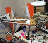 Моторама усилена разными типами фанеры, вся передняя часть промазана проклеена и в меру усилена. Все примочки и усиления оставили след в виде 5,2 кг взлетного веса, многовато конечно но пока для начала думаю пойдет. Центровка по трубе, в полете немного передняя, в самый раз для первых полетов, вообщем спрашивайте…
