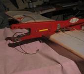 Что касается шасси, я делаю так: просверливаю отверстия в фюзеляже на нужном расстоянии друг от друга, на сквозь с обоих сторон, вставляю туда металлические прутки так их назовём и в них тоже просверлены отверстия. Прутки садятся на СА, потом смолой. Затем гну стойку шасси как нужно и кончики вставляю в эти прутки. На фото костыли… На биплан который сейчас делаю буду ставит колёса летом, а так как скоро зима лыжи. Фото: