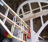 Технология фюзеляжа: фанерные боковины от фрукт. ящиков, до задней кромки крыла. Далее прямоугольный в сечении реечный набор, усиленный переборками. Сверху сзади- пенопластовый гаргрот. Фюзеляж до задней кромки крыла будет обклеен потолочкой. Сверху весь фюзеляж покрывается намоченной бумагой, на ПВА.