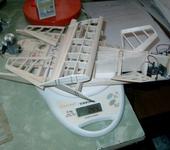 Начали меня брать сомнения. Вроде все из бальзы, вроде все легкое - а в кучку сложешь - чтото сильно на руку давит. Начинал делать как RC планер - потренироватся под большую модель с двигателем SAITO 100. Потом глядя на фотки упомянутой выше ветки форума захотелось и двигатель поставить. Вобщем я завелся не нашутку - даже спать стал плохо.