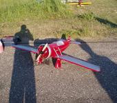 взлетный вес на 400г.больше(топливо),двигатель-580г.+60г.-глушитель.Конструкция классическая цельнобальзовая.привод элеронов раздельный ,плюс одна серва на закрылки.