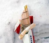 Сделал два полета. Лыжи - ну просто мечта! Через лыжню переезжают на ура. На посадке все проходит как по маслу. Короче, совсем я расслабился, и в третьем полете решил развернуть самолет, сделав полубочку и затем полупетлю. Но толи расходы элеватора были велики, толи ручку я на себя резко дал(да вроде плавно), вообщем в нижней части траектории, когда маневр был практически закончен, самолет вдруг резко и неожиданно для меня “скрутило”. Была бы высота побольше - успел бы сориентироваться, но тут было всего метра три - петля-то вниз была, да и радиус у петли был ого-го(ведь помню, специально ручку забирал плавно). Морковка, вообщем. Что самое интересное - лыжам хоть бы хны! 😃 Так что всем рекомендую лыжи из короба и фанеры - вещь классная.