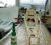 Да начало положено, сезон в разгаре, гнать не буду ибо поспешнасть нужна при ловле блох, но и на долгострой не надеюсь. Все будет зависить от скорости высыхания клея и ловкости рук. Клею до огнестенки все ПВА Д3, а до моторамы смолой, и побольше, погуще. Весь мото отсек планирую покрыть еще краской только вот думаю какой. Ну и нишу для бака тоже покрашу, на всякий случай, а то случаи всякие бывают. Завтра приступаю к крыльям, руки чешутся увеличить элероны, но думаю оставлю какие есть.