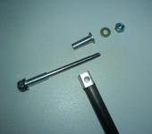 Теперь о конструкции: тяга действительно- карбоновая трубка 5х3, на одном конце вклеена резьбовая шлилька на другом дюралевая бобышка с отверстием под шпильку с резьбой на концах, через дистанционные втулки прикручиваются шаровые наконечники.Вот и все примудрости.Из фоток я думаю всё будет понятно.[attachment=36