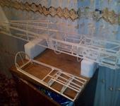 На данный момент делаю каркас фюзеляжа. Работа идет не быстро- кризис, он везде! Сейчас думаю, как осуществить привод РВ. Серва будет одна, расположена в районе крыла. Хочу сделать промежуточную качалку с раздвоением на каждую половину РВ. Как и из чего ее изготовить, что бы прочно и легко?