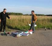 До этого, летая в том же месте на тренере, я ловил то ли помехи, то ли термики, то ли порывы ветра(тренерок колбасило серьёзно), и решил сменить приёмник - поставил футабу. Дома - всё отлично! Но после краша отходя с передатчиком от самолёта метра на пять - приёмник ВООБЩЕ!!! не видел сигнала! То есть совсем!!! Даааа… Я понимаю, мой косяк(не проверил перед вылетом, и вообще сначала надо было тренерка мучить)! Но грустно так, что слёзы наворачиваются…