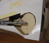 Шасси слишком толстое:(, вернее его часть в узле амортизации, которая не дает возможности колесу лечь глубже в крыло и выталкивает его наверх, отсюда вся проблема. Подождем нормальные колеса, а не пенопласт и попробуем еще раз, плюс будем пытаться максимально убирать выступающие элементы.