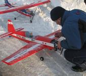 Взлет, посадка на ура. Летал без капота и обтекателей колес. А вот полет - двоякое впечатление. Конечно намного интересней чем Тренер, но во время полета был силный порывистый ветер еще и боковой. Поэтому больше боролся с ветром чем летал. Помоему, рекомендованный винт производителем двигателя (11х7) маловат, в следующий раз поставлю побольше. Кстати, какой винт посоветуете? 😃 Сажал, на всякий случай, в сугроб, но пасадка прошла так идеально(сел как пушинка) что,я думаю, можно было посадить и на дорогу.