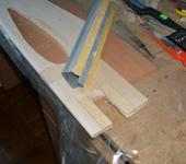 Далее вставляю вставки из фанеры, по толщине соответствующей толщине бальзы, на эпоксидке. На эти места потом будет крепиться двигатель и стойки шасси.